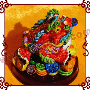 - 【讲解】:金蟾为旺财最佳的瑞兽,其造型为三足,脚踏金钱财宝,头顶太极两仪,背负北斗七星,口吐金钱,嘴旁衔两串金钱,金蟾所吐金钱是旺财的,摆放后有吐财、聚财、镇财的作用,可吐宝进财、避邪化凶、旺财化煞的功效,又能辟五兵、镇凶邪、解毒病、除小人,是主富贵的吉祥瑞兽,所到之处必定富庶。根据主人命理找出安放金蟾的财位禄位,在家宅则使金蟾的头朝主人的床位;在公司商铺里则使金蟾的头朝老板的座位,且金蟾的头应该头朝公司内或住宅内,头朝内则可将吐出的钱财送入室内,使财运增加、财气增强,并且兼具堆金积财的功效;如果把嘴朝想门外,则会把钱财吐出室外,不但无法催旺财气,反而可能引致漏财。俗语说:二条腿的人好找,三条腿的蛤蟆难求;刘海戏金蟾,步步钓金钱;凤凰非梧桐不栖,金蟾非财地不居,金蟾所到之处,金钱集聚,所居之地,都能变成聚财宝地等。金蟾本是妖精,由于长年危害百姓,后被仙人刘海收服,在被仙人刘海打回原形的过程中伤断一脚,所以日后只余三脚,自此金蟾臣服于刘海门下,改邪归正,为求将功赎罪,跟随刘海四处伏妖助人,由于仙人刘海最喜布施金钱给贫苦之人,则金蟾也吐出金钱,以助刘海发散钱财造福世人,遂被当作旺财的瑞兽,称为金蟾。